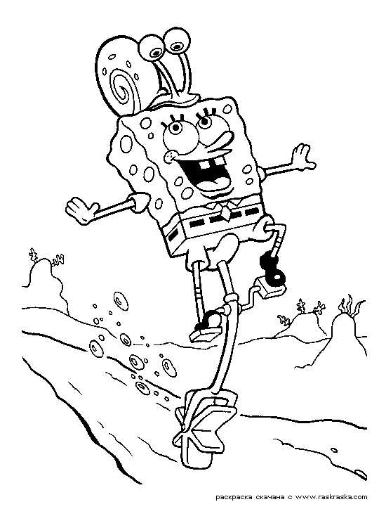 Губка Боб катається з равликом. Раскраска Розмальовка Губка Боб, равлик, для дітей завантажити бесплатно онлайн