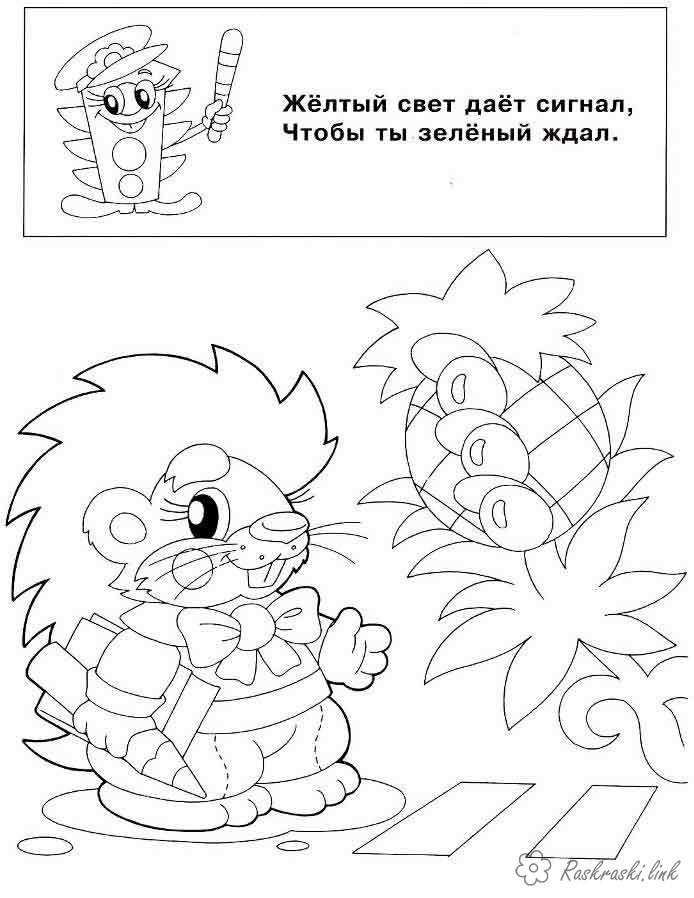 Розмальовка "Правила Дорожнього Руху". Раскраска розфарбування ПДД. світлофор. жовте світло завантажити бесплатно онлайн