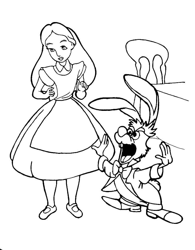 Розмальовка для дітей "Аліса в країні чудес". Раскраска Дитяча розфарбування по мультфільму Аліса в країні чудес, Аліса, Кролик завантажити бесплатно онлайн