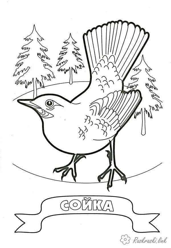 Розмальовка лісова птах сойка. Раскраска розмальовки для дітей, сойка, птиця завантажити бесплатно онлайн