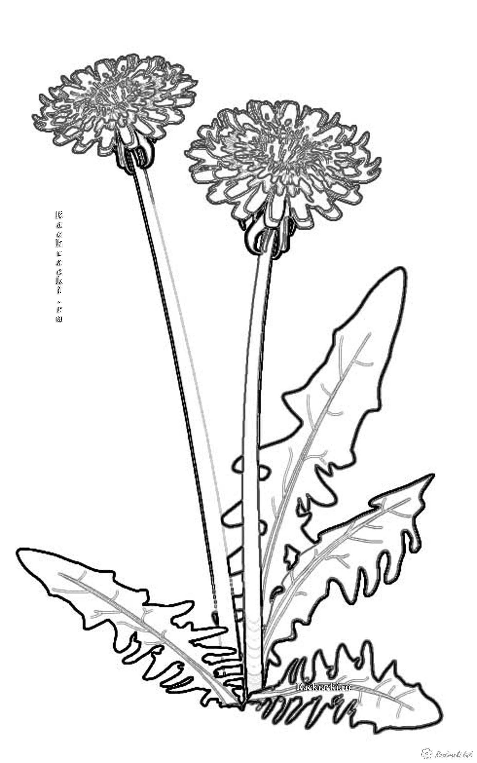 Розмальовка для дітей "Кульбаби". Раскраска Дитяча розфарбування квіти, кульбаби завантажити бесплатно онлайн