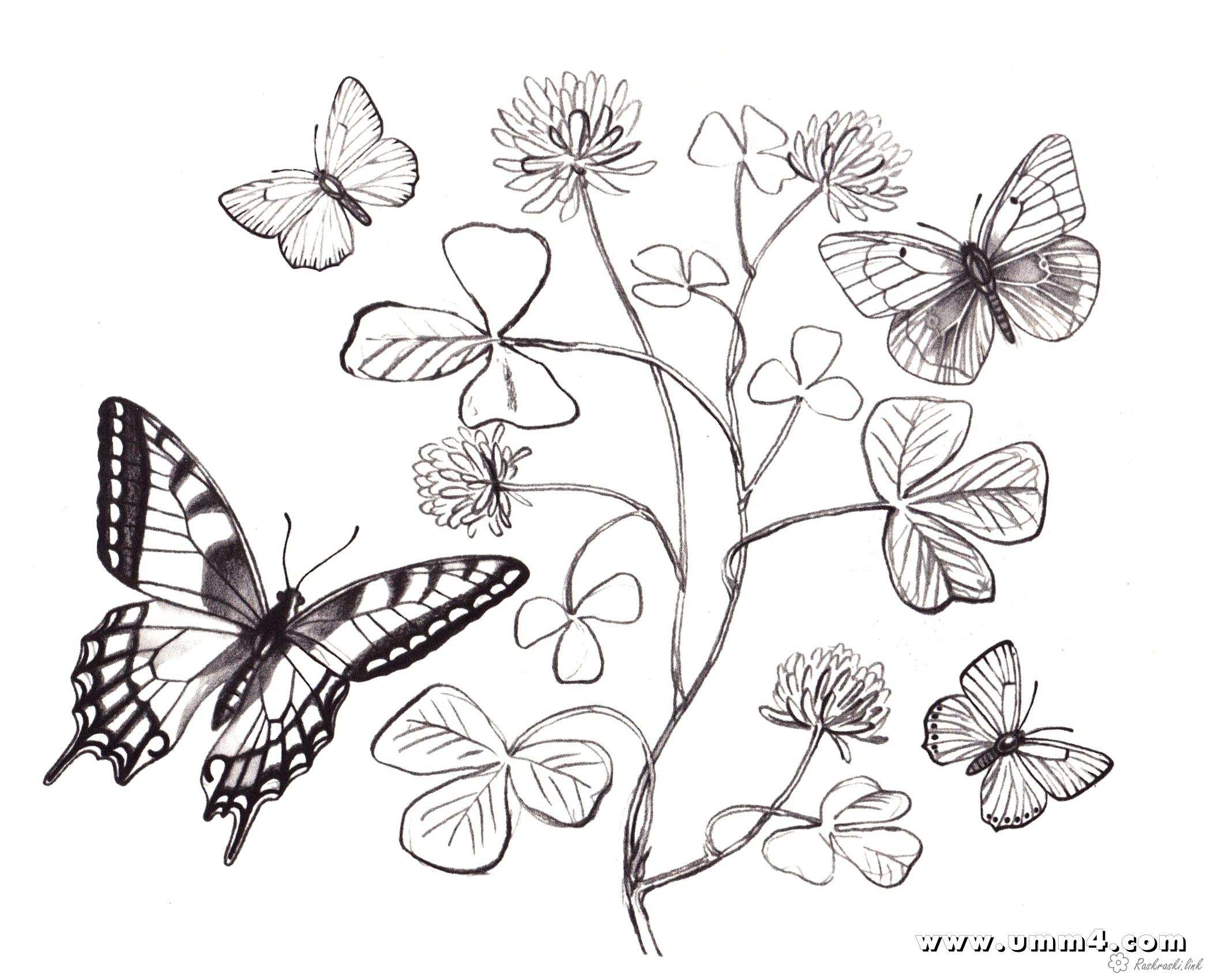 Розмальовка для дітей "Квіти і Метелики". Раскраска Дитяча розфарбування "Квіти і метелик" завантажити бесплатно онлайн