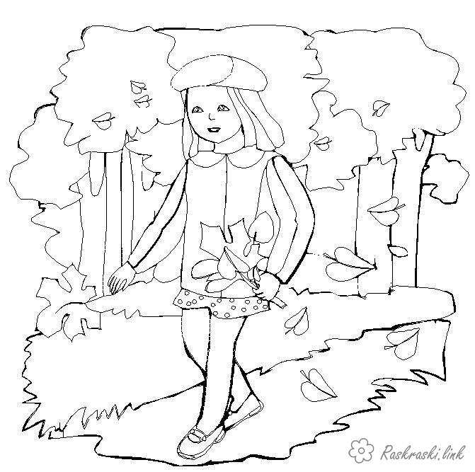 розмальовки "осіння прогулянка". Раскраска дитячі розмальовки, розмальовки, осінь, дівчинка завантажити бесплатно онлайн