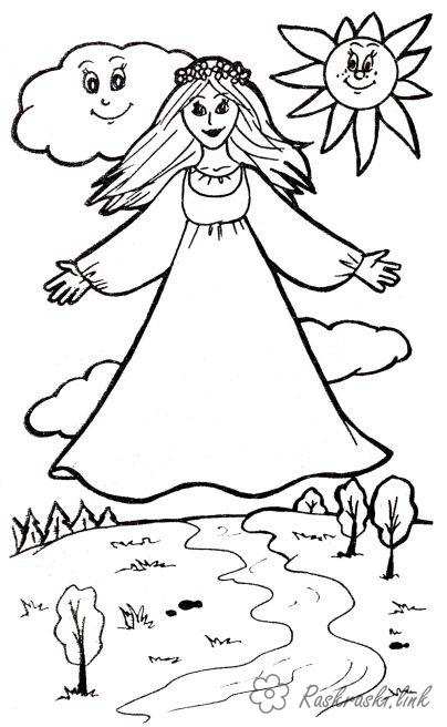Девушка-весна. Раскраска весна, солнышко, ручеек завантажити бесплатно онлайн