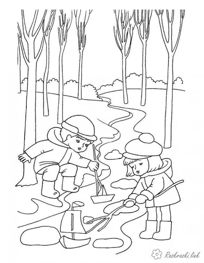 весна діти кораблик струмок ліс. Раскраска весна діти кораблик струмок ліс завантажити бесплатно онлайн