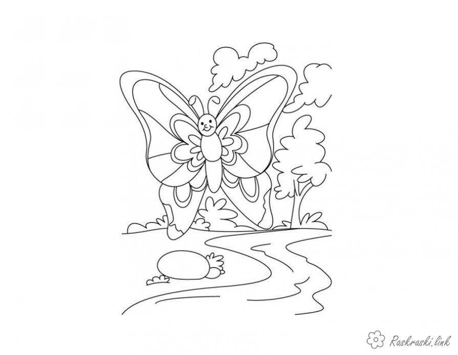 Розмальовка дитяча "Метелик". Раскраска розфарбування, метелик, літо, ліс, дорога завантажити бесплатно онлайн