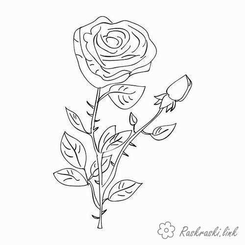Роза. Раскраска розмальовки рослини, природа, квіти завантажити бесплатно онлайн
