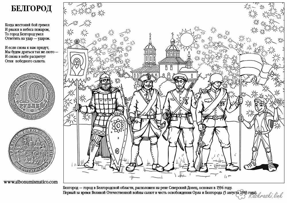 Білгород. Раскраска розмальовки День Росії, розмальовки Росія, міста Росії, солдати завантажити бесплатно онлайн