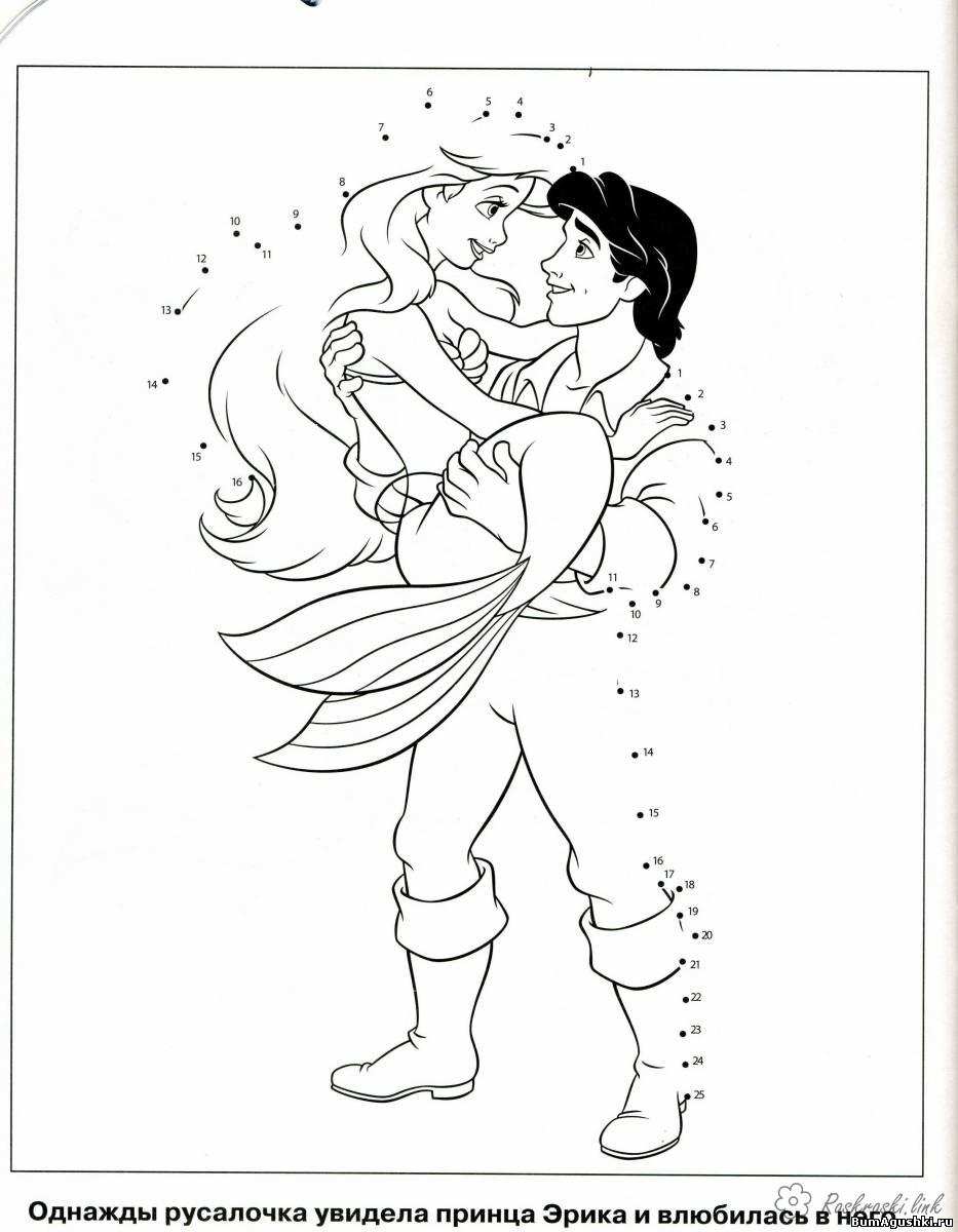 Ерік несе Аріель на руках. Раскраска по точках, з'єднай, ерік, Аріель, розмальовки завантажити бесплатно онлайн