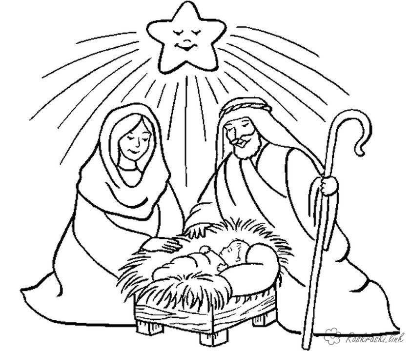 різдво. Раскраска різдво, ніч, зірка, ісус, розмальовки завантажити бесплатно онлайн