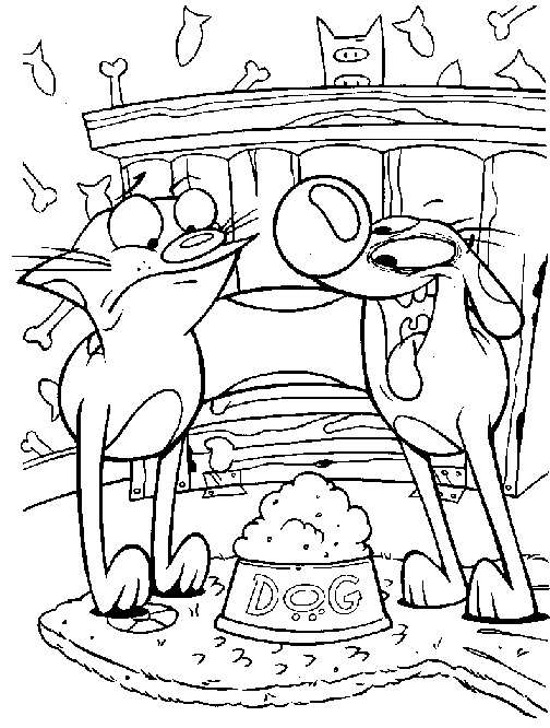 Пес задоволений своєю улюбленою їжею, а кіт - немає. Раскраска Котопес, розфарбування, кіт, пес, їжа, радість, смуток, собачий корм завантажити бесплатно онлайн