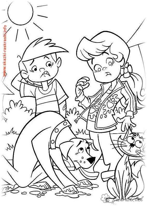 Діти і собака. Раскраска Свято 1 червня День захисту дітей діти собака хлопчик дівчинка завантажити бесплатно онлайн