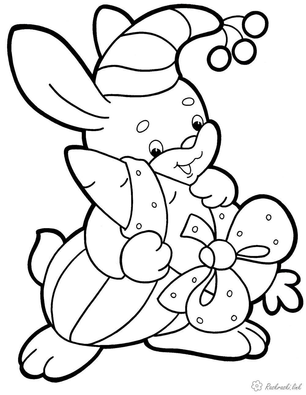 Розмальовка для дітей "Зайка з подарунком". Раскраска Дитяча новорічна розфарбування "Зайка з подарунком" завантажити бесплатно онлайн