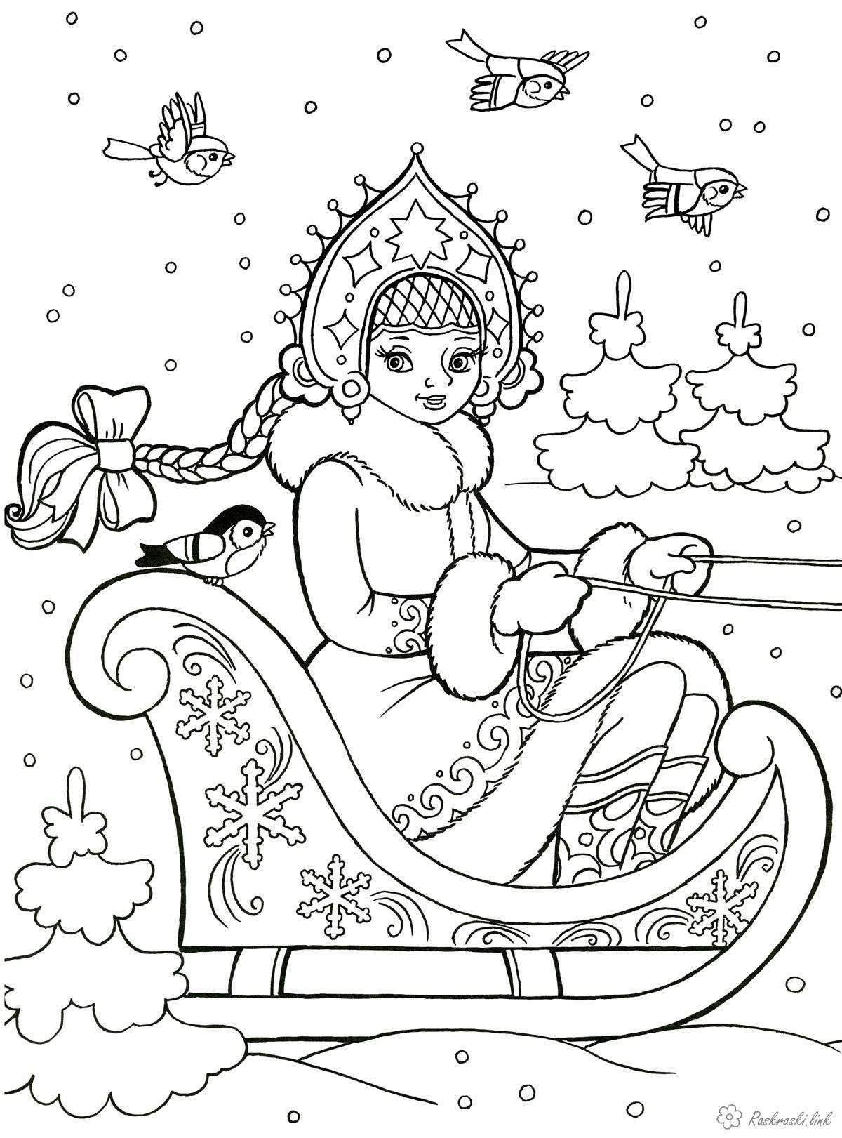 Розмальовка для дітей "Снігуронька". Раскраска Дитяча новорічна розфарбування "Снігуронька" завантажити бесплатно онлайн