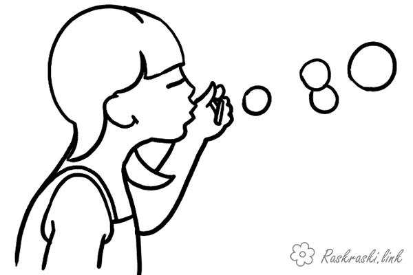 Мильні бульбашки. Раскраска Свято 1 червня День захисту дітей дівчинка мильні бульбашки гра літо завантажити бесплатно онлайн