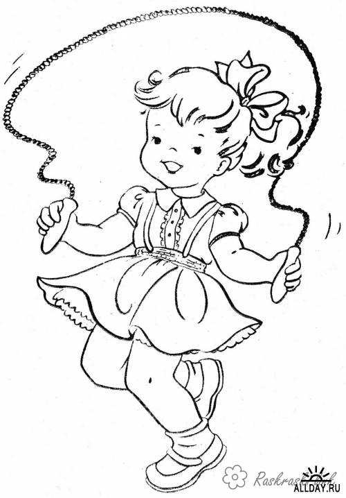 Дівчинка зі скакалкою. Раскраска Розмальовки свята, розмальовки 1 червня, діти, дівчинка завантажити бесплатно онлайн