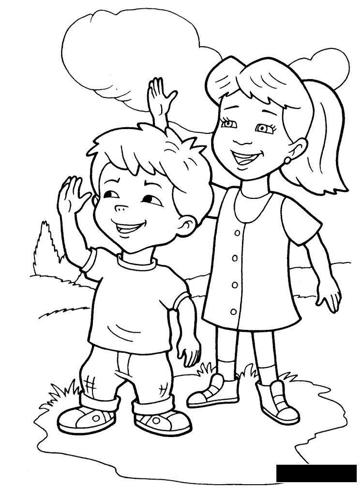 Дівчинка і хлопчик. Раскраска Розмальовки свята, розмальовки 1 червня, дівчинка, хлопчик, діти завантажити бесплатно онлайн