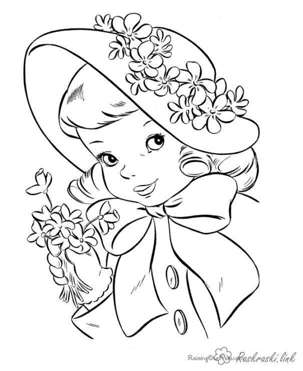 Дівчинка в капелюшку. Раскраска Свято 1 червня День захисту дітей дівчинка квіти капелюшок завантажити бесплатно онлайн