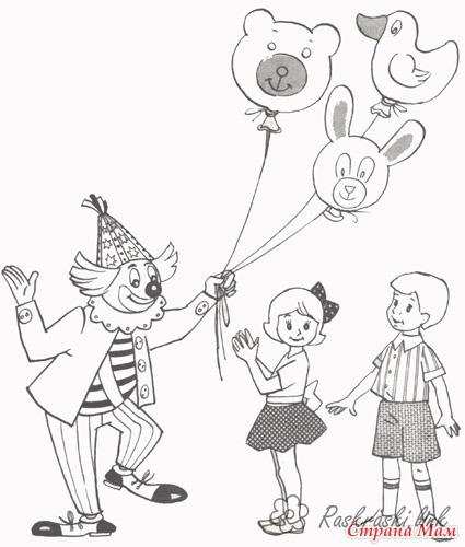 Діти і клоун. Раскраска Свято 1 червня День захисту дітей клоун кульки діти дівчинка хлопчик завантажити бесплатно онлайн
