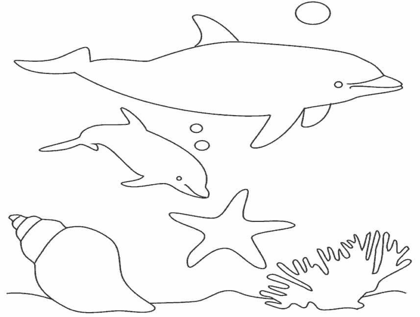 дельфіни і морська зірка. Раскраска природа підводний світ морська зірка дельфіни завантажити бесплатно онлайн