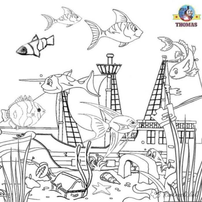 корабель під водою. Раскраска природа підводний світ корабель під водою рибки завантажити бесплатно онлайн
