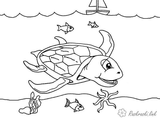 Черепашка. Раскраска Природа підводний світ море черепаха риба завантажити бесплатно онлайн