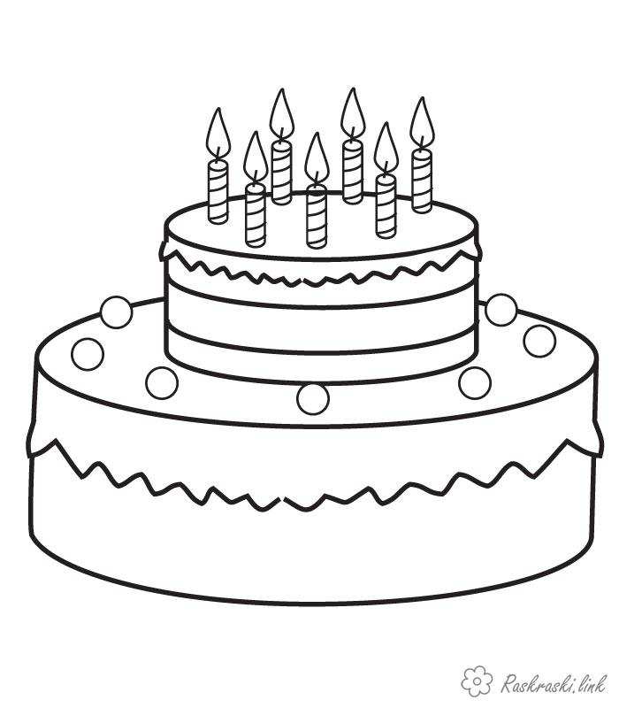 розфарбування торт зі свічками. Раскраска розфарбування торт зі свічками, з днем ??народження завантажити бесплатно онлайн