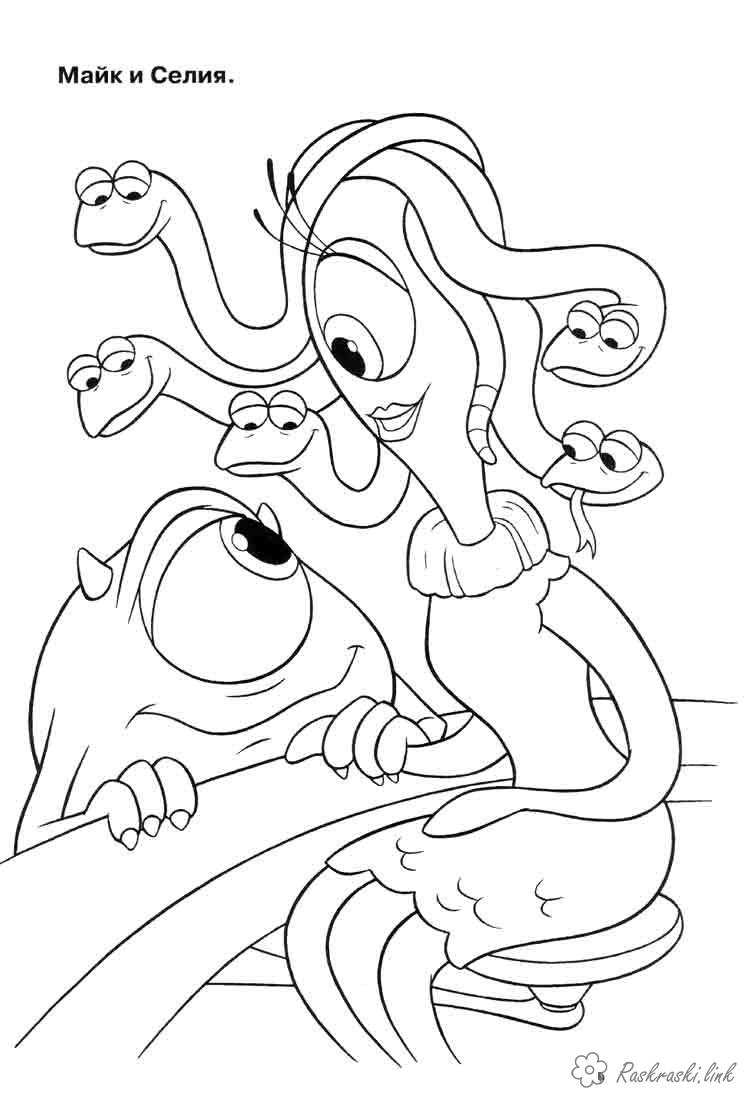 Копорації монстрів. Раскраска Майк і Селія, мультфільм, розмальовки для дітей завантажити бесплатно онлайн