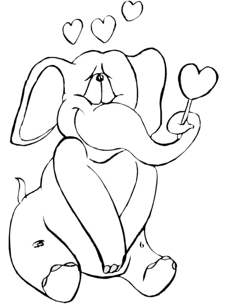 Слоненя з сердечком. Раскраска Слоненя, сердечко, День Святого Валентина завантажити бесплатно онлайн