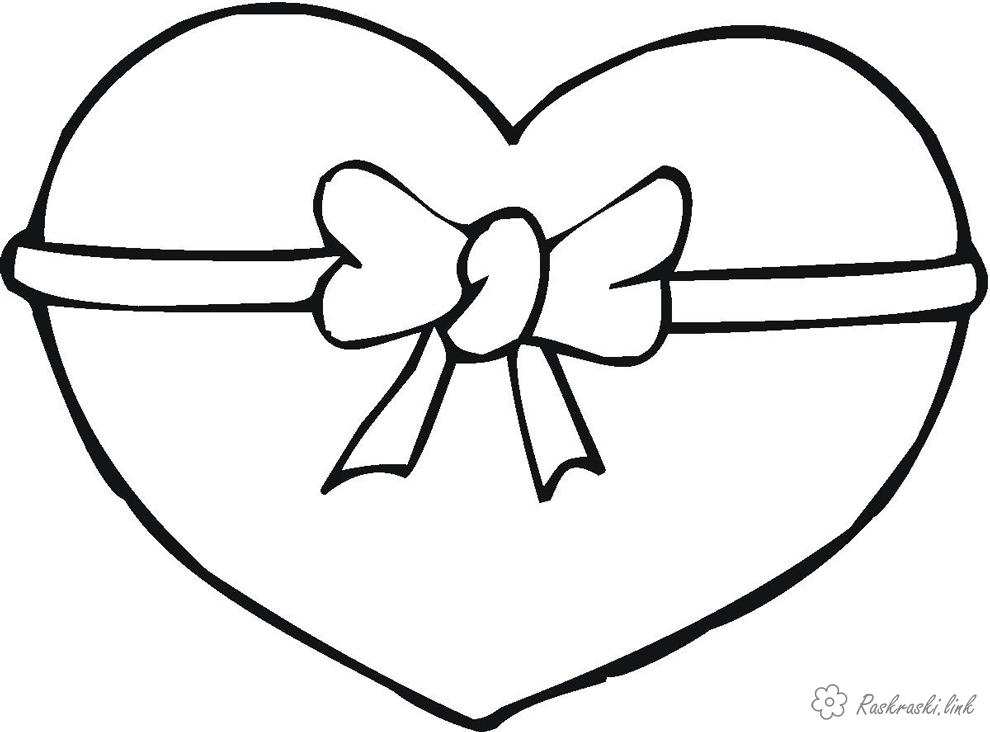 Большое сердце с бантиком. Раскраска Сердце, бант, День Святого Валентина завантажити бесплатно онлайн