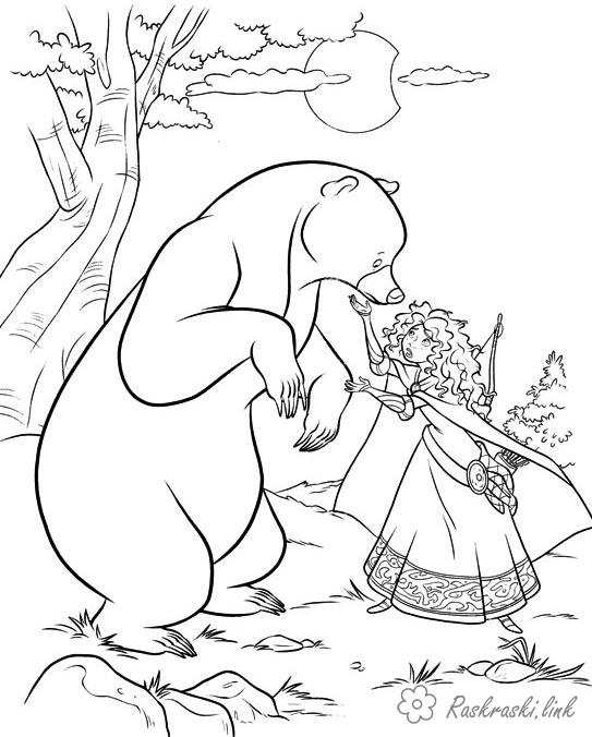 Меріда з матір'ю-ведмедицею. Раскраска розмальовки хоробра серцем, Меріда, дівчина, ведмідь завантажити бесплатно онлайн