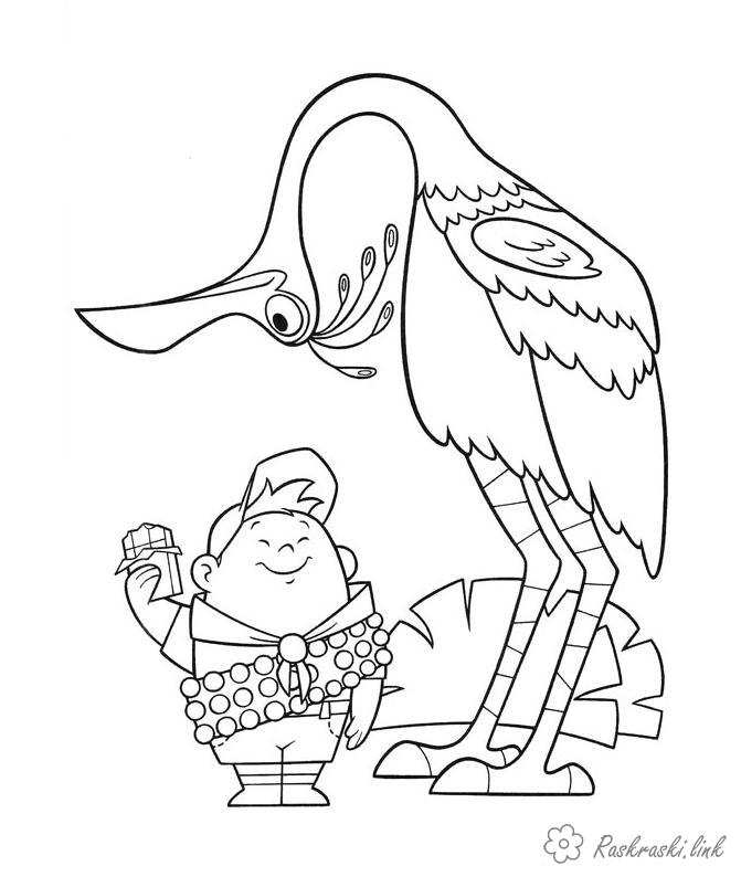 Розмальовка скаут Рассел і птиця Кевін. Раскраска Мультфільми, Вгору, Рассел, скаут, хлопчик, дитина, великий птах, Кевін завантажити бесплатно онлайн