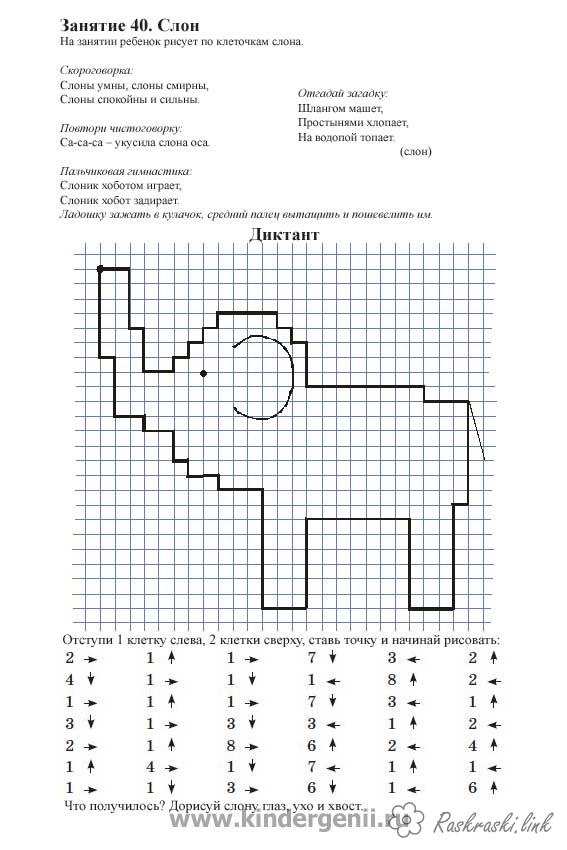 Слоник. Раскраска графічний диктант слон завантажити бесплатно онлайн