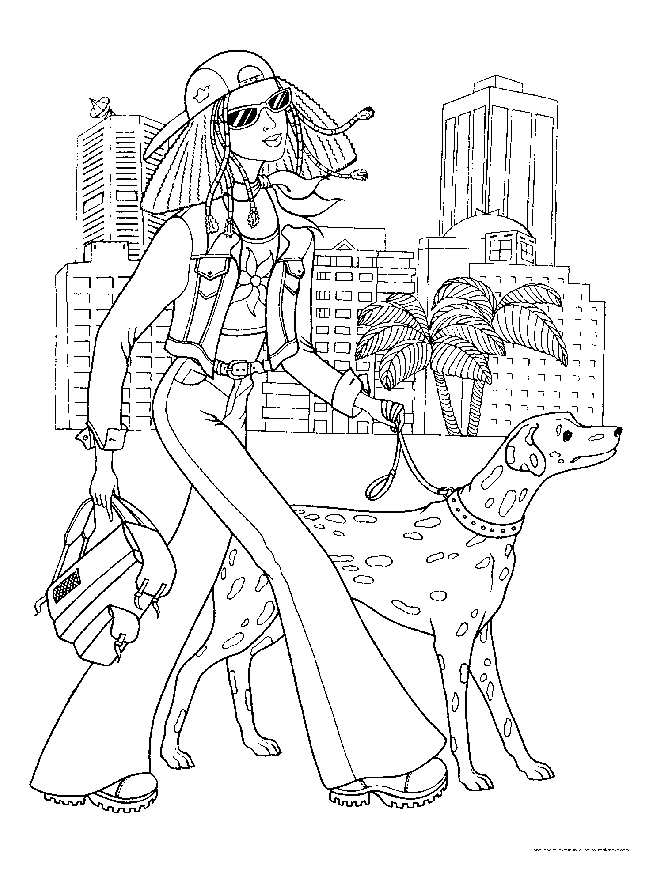 На вулиці. Раскраска Дівчаткам, дівчинка, вулиця, літо, собака, прогулянка завантажити бесплатно онлайн