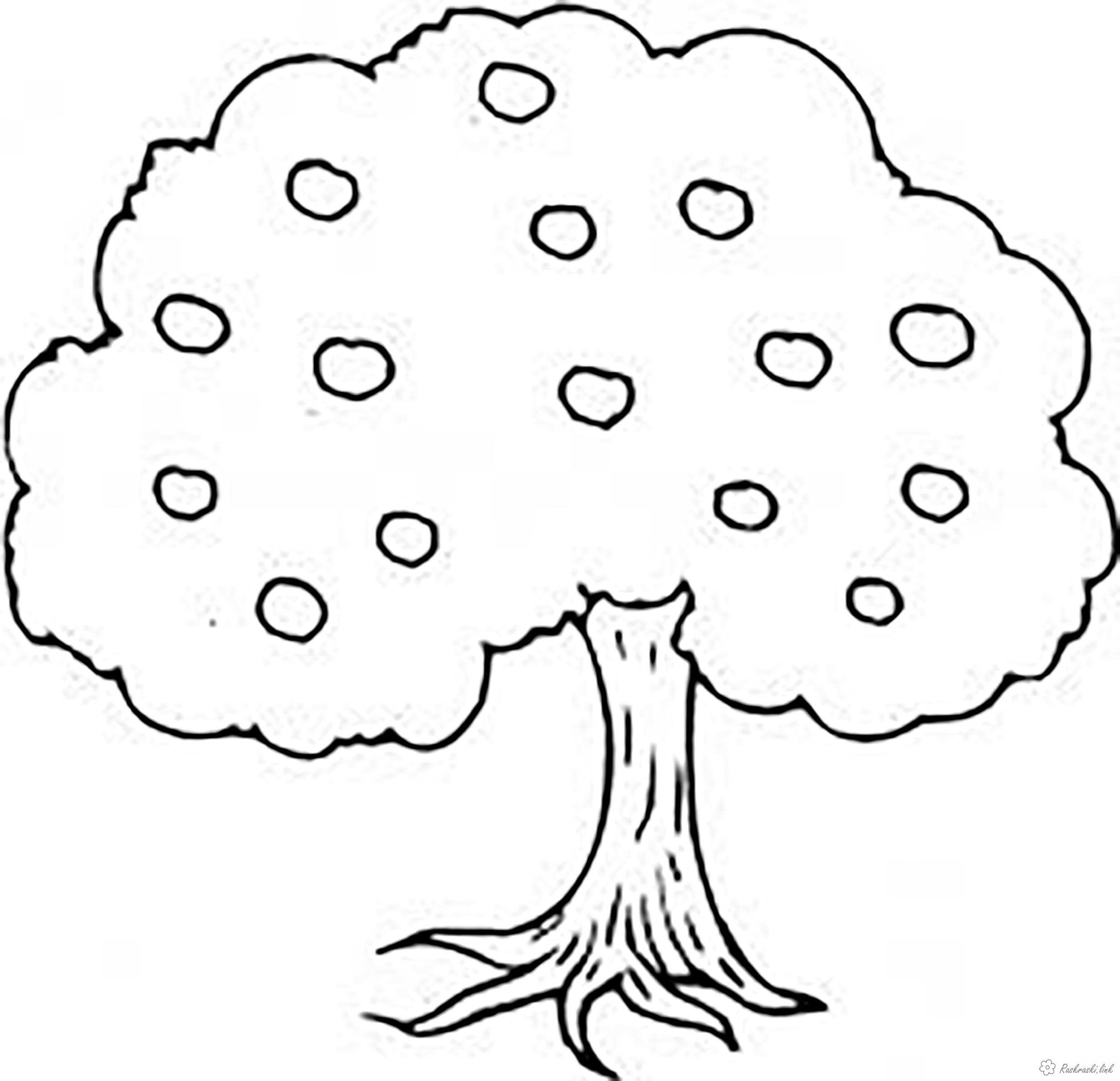 Велика яблуня розцвіла, розмальовки . Раскраска Яблуня, розцвіла, велика, соковиті яблука, розмальовки завантажити бесплатно онлайн