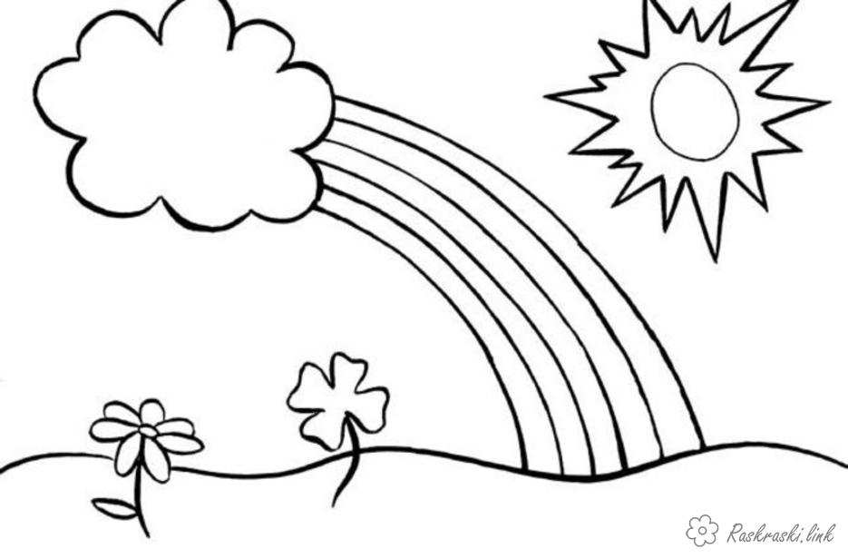 Веселка і сонечко. Раскраска розмальовки для дітей, явища природи, природа, веселка, сонце завантажити бесплатно онлайн