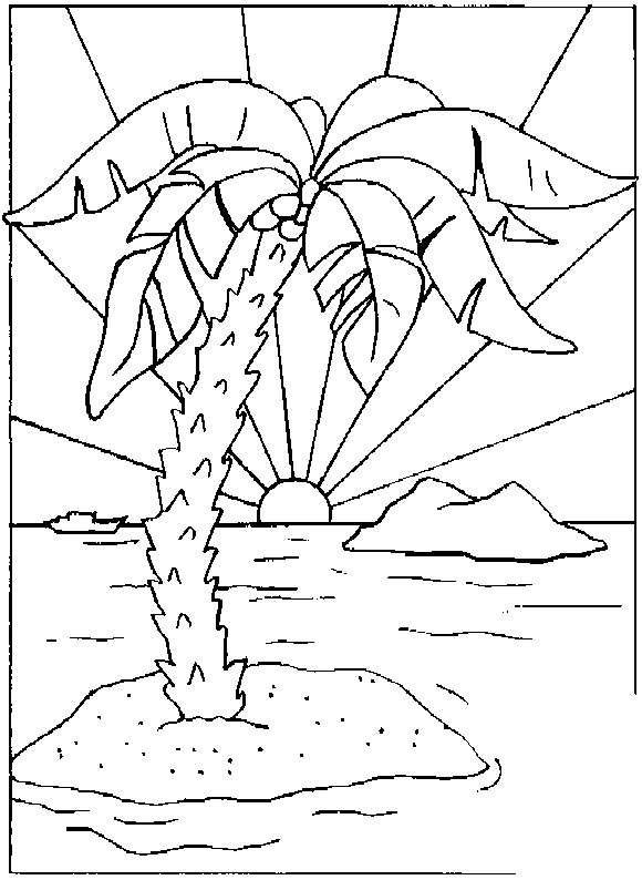 Пальма. Раскраска розмальовки для дітей, природа, відпочинок на природі, острів, пальма, море, сонце завантажити бесплатно онлайн