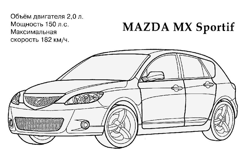 Mazda спортивна машина. Раскраска спортивна машина розфарбування для хлопчиків завантажити бесплатно онлайн