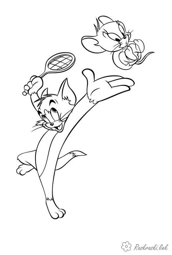 Том і Джері тенісисти. Раскраска Том і Джері тенісисти розфарбування, спорт, олімпіада завантажити бесплатно онлайн