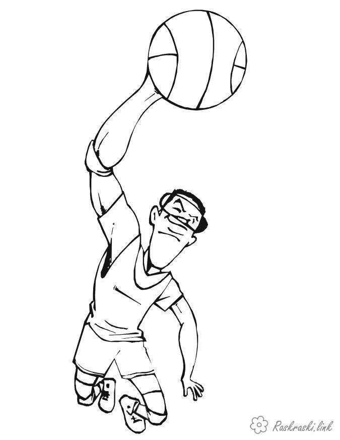в стрибку з м'ячем. Раскраска стрибок, баскетбол, м'яч завантажити бесплатно онлайн
