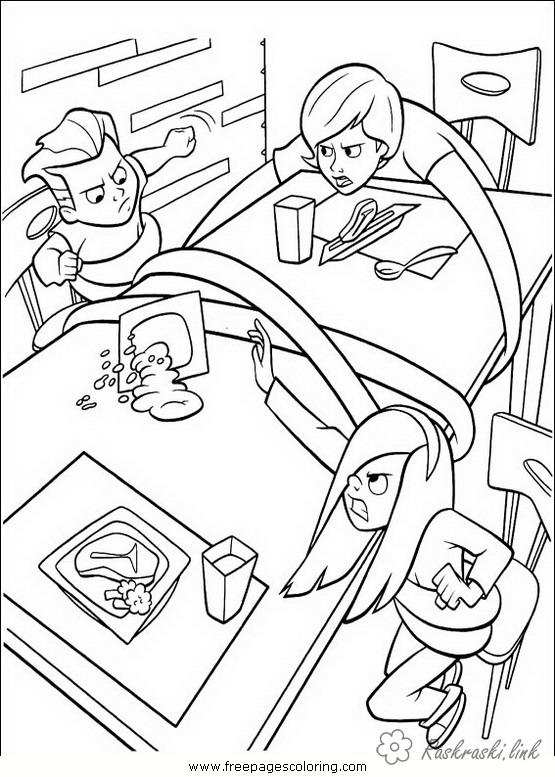 суперсімейка за столом. Раскраска розфарбування суперсімейка, Теш, хелен і Віолетта завантажити бесплатно онлайн