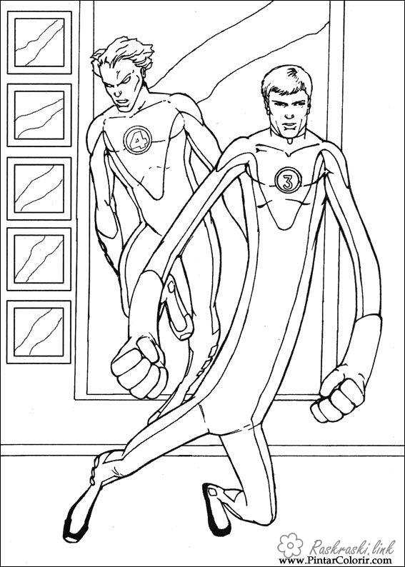 Marvel супергероїв . Раскраска містер Фантастика і людина-факел розфарбування для хлопчиків завантажити бесплатно онлайн