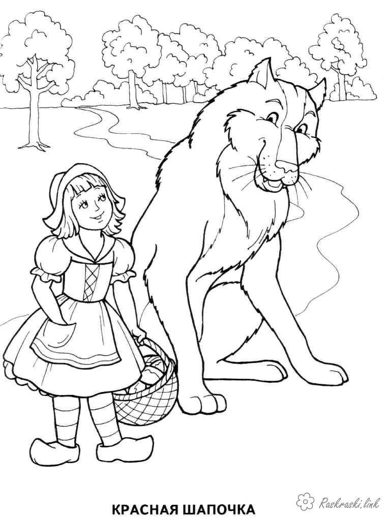 розфарбування Червона Шапочка. Раскраска розфарбування казки Червона Шапочка і Сірий вовк завантажити бесплатно онлайн