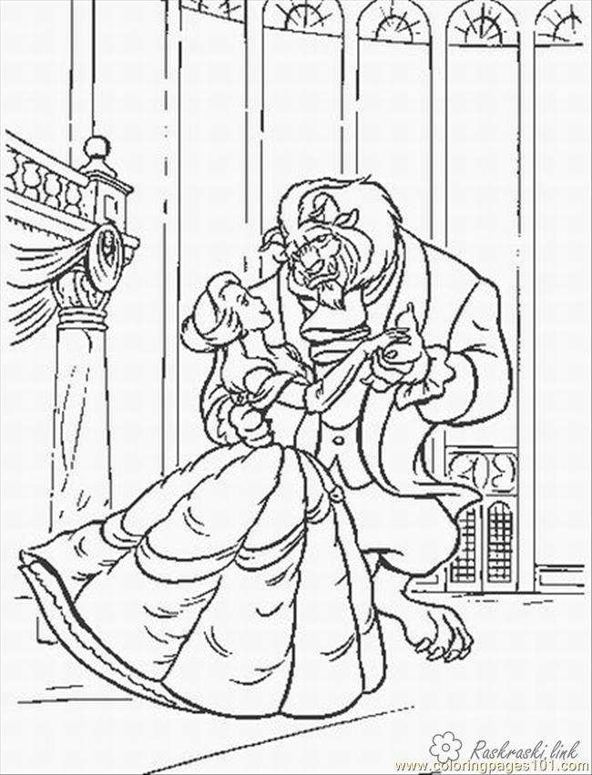 Красуня і чудовисько танцюють. Раскраска Красуня і чудовисько, танець, розмальовки завантажити бесплатно онлайн