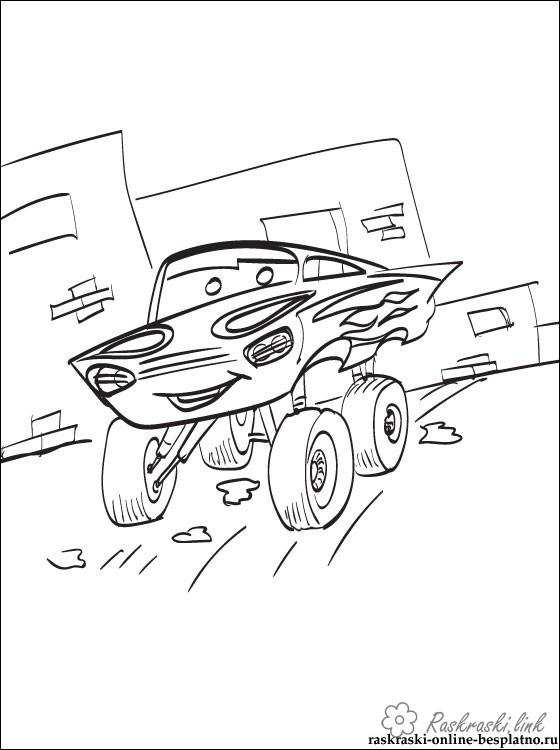 тачки 2 машинка на великих колесах. Раскраска розфарбування до мульфильма тачки 2 завантажити бесплатно онлайн