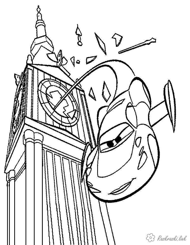 тачка вилітає із біг Бена. Раскраска розмальовки тачки 2, біг бен завантажити бесплатно онлайн