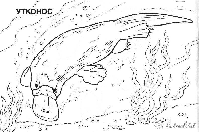 Качконіс. Раскраска розмальовки для дітей, тварини, качконіс завантажити бесплатно онлайн