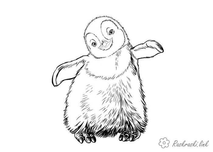 Пінгвіненя. Раскраска розмальовки для дітей, тварини, Антарктида, пінгвін завантажити бесплатно онлайн