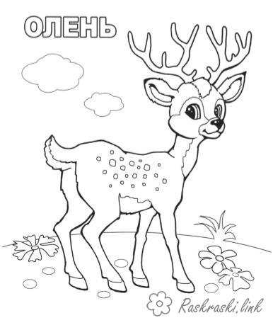розмальовки для дітей Оленя. Раскраска розмальовки тварин, плямистий олень, ліс, для дітей завантажити бесплатно онлайн