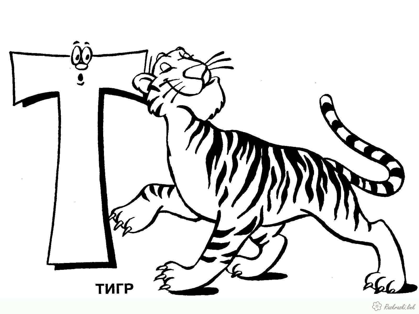 Алфавіт буква Т тигр. Раскраска Букви алфавіту в розмальовках. Буква Т тигр завантажити бесплатно онлайн